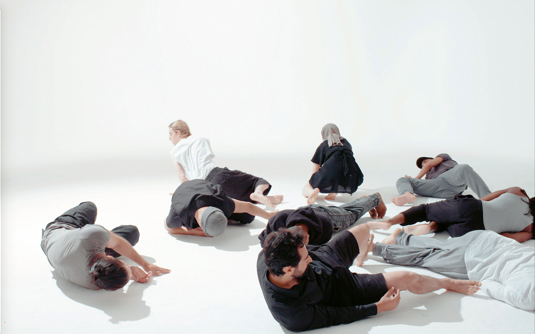 The sculpture Multi-Gesture Gym is activated through performance, whereby a choreography of deconstructed, seemingly pointless, and absurd movements are combined with elements of prescribed rules and instructions and moments of improvisation